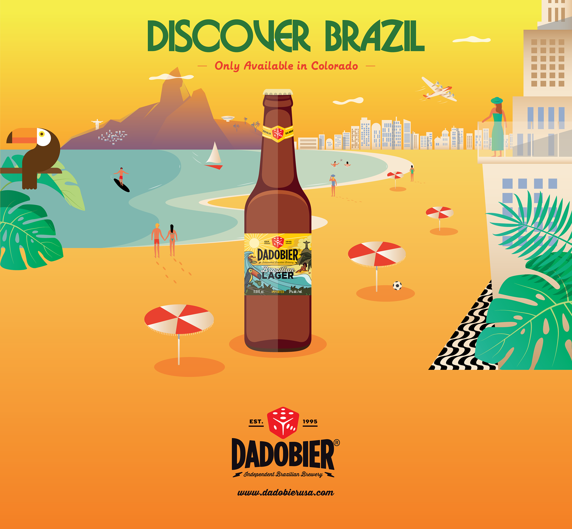 For the adventure-seeking beer drinkers who have the passion for the exotic and flavours from around the world.A thirst for the undiscovered, quenched only by a genuine and authentic Brazilian beer. The only imported beer with unique Brazilian ingredients brewed from off the beaten path in Brazil. If you live like rolling the dice, DaDo Bier is your kinda taste. This campaign was created for the launching of the Brazilian Beer in Colorado.